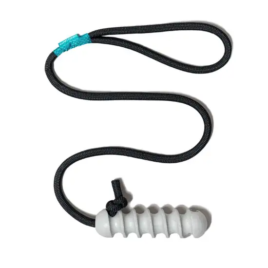 This stick-shaped toy has a rope at the end, perfect for throwing, playing and exercising. The material is made of TPR rubber and the rope is made of nylon.