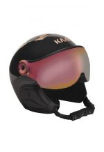 - 2-in-1 ski helmet with a glossy chrome-finished shell and integrated visor