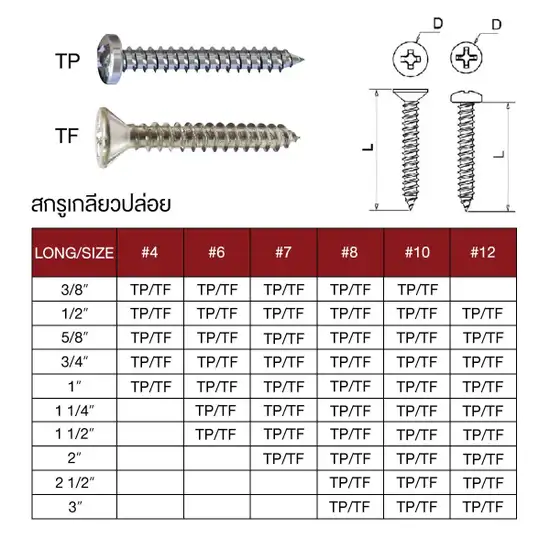 PANSIAM Nickel Flat Head Self Tapping Screw TF-12212 Size 12 x 12 1/2 Inch. (Pack 100 Pcs.). 100% оригинал