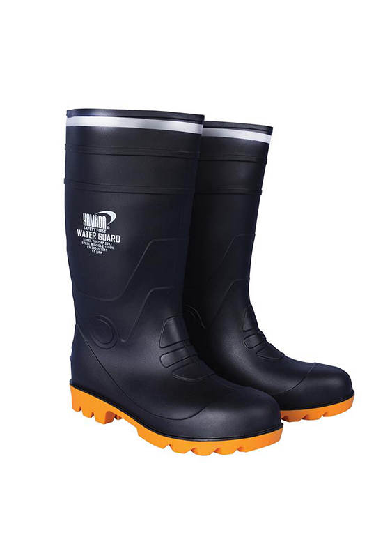 รองเท้าบู๊ทยางหัวเหล็กทรงสูง ช่วยปกป้องหน้าแข้งและเท้า เหมาะสำหรับงานที่ต้องลุยสารเคมี กรด-ด่าง น้ำมัน และงานก่อสร้างหนักๆ ผลิตจาก PVC ผ่านกระบวนการฉีดขึ้นรูปแบบไร้รอยต่อ แข็งแรงทนทานและกันน้ำได้ดี เสริมหัวเหล็กรับแรงกระแทกได้ถึง 200 จูล พื้นเสริมแผ่นเหล็กต้านทานการเจาะทะลุ และมีแถบคาดสะท้อนแสง ช่วยให้มองเห็นในเวลากลางคืน