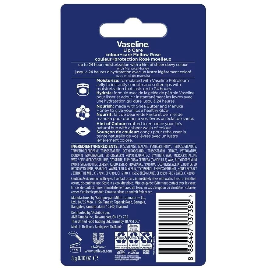 <p>Vaseline Уход за губами Цвет+Забота Нежный Розовый (Мелллоу Роуз) 3 г<br /> <strong>Лип-бalm уход за губами с оттенком нежно-розового цвета, интенсивное увлажнение и питание</strong></p> – Vaseline Lip Care Colour+ Care Mellow Rose 3 G. ลิปบำรุงริมฝีปาก สดใส ฉ่ำวาว ชุ่มชื้น
