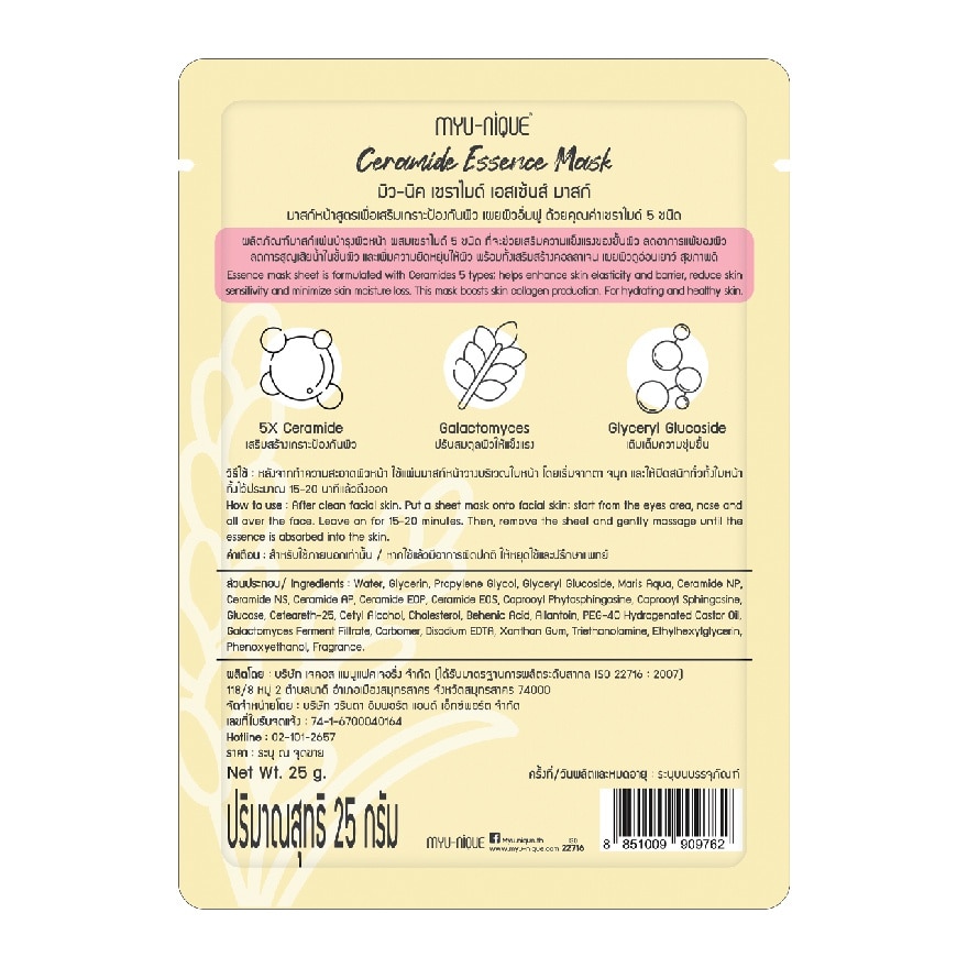 Маска для лица Myu-Nique Церамид Эссенс Маску’с 1С (защита кожи, увлажнение, сияние) – Myu-Nique Ceramide Essence Mask 1’S มาสก์หน้า เสริมเกราะป้องกันผิว เผยผิวดูอิ่มฟู