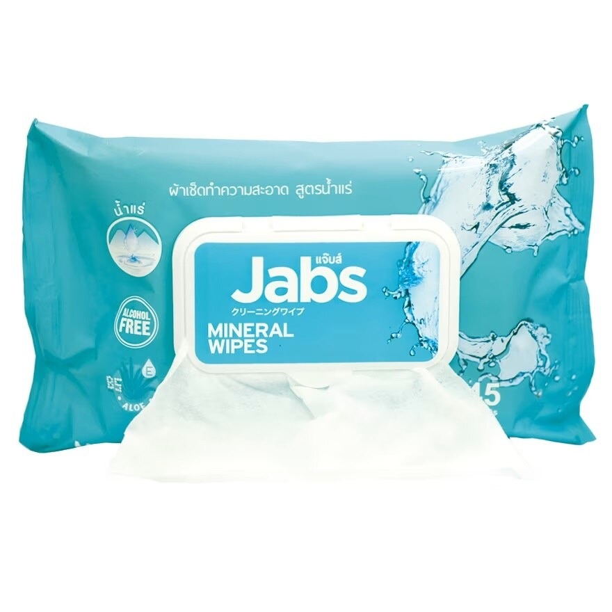 Джабс Минеральная Вода Вэйт Ватипс (ватные диски) 45 шт., двойная упаковка ― влажные салфетки с натуральным минеральным увлажнением. – Jabs Mineral Water Wet Wipes 45’S Twin Pack ผ้าเช็คทำความสะอาด สูตรน้ำแร่ธรรมชาติ