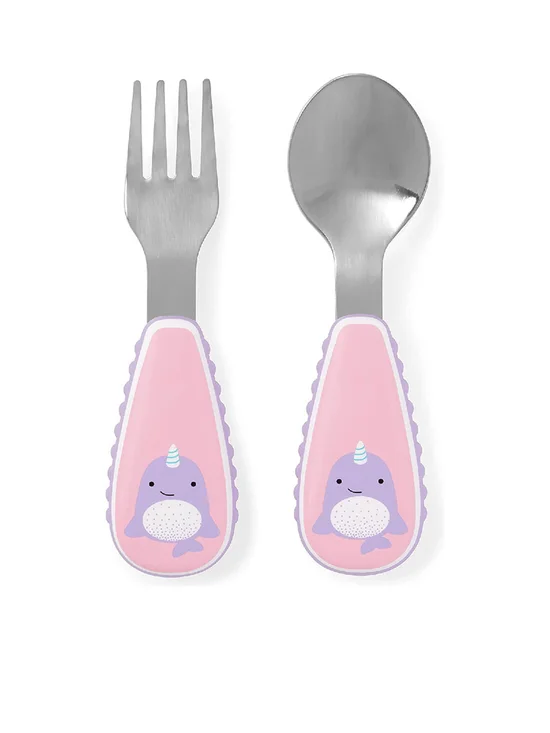 Zootensils Fork & Spoon Narwal by SKIP HOP,This adorable fork & spoon has soft side grips so it’s easy for little ones to hold. Stainless steel heads make the utensils feel very grown up for little ones!