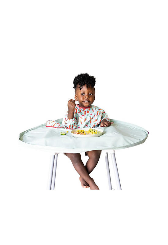 Introducing the TIDY TOT bib and tray set, a helping hand for moms that not only prevents food spills on your child’s clothes but also securely attaches to the tray, stopping food from falling into chair crevices.