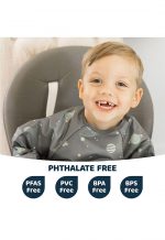 Available in sizes Small (6-24 months) and Large (2-4 years), these bibs are easy to clean with a simple hand rinse and hang dry or machine wash.