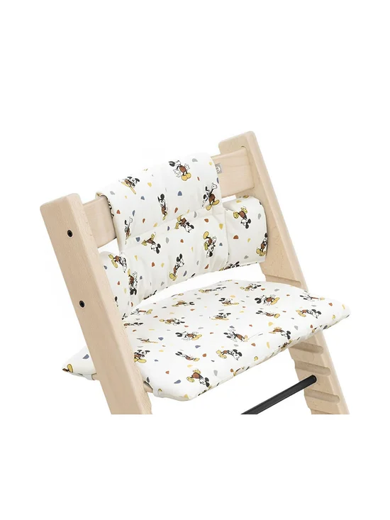 STOKKE Versatile and functional, the Tripp Trapp Cushion adds both softness and personality. Available in a wide range of colors and patterns, selected designs are offered in a coated version for easy wipe. It is best compatible with all Tripp Trapp chairs with or without the Tripp Trapp Baby Set. Safe, OCS Organic 100 Cotton Content Standard.