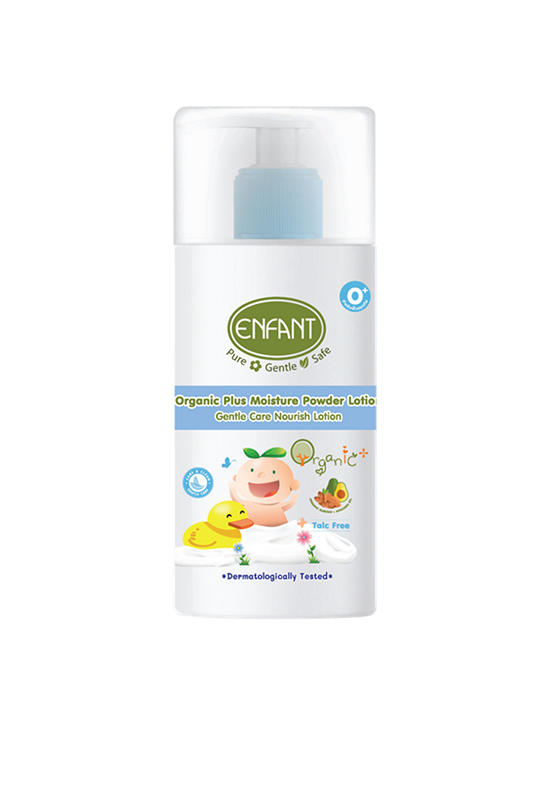 - Specific information for ENFANT Organic Plus Moisture Powder Lotion: Baby lotion powder with Double oil formula, suitable from birth, 250ml.