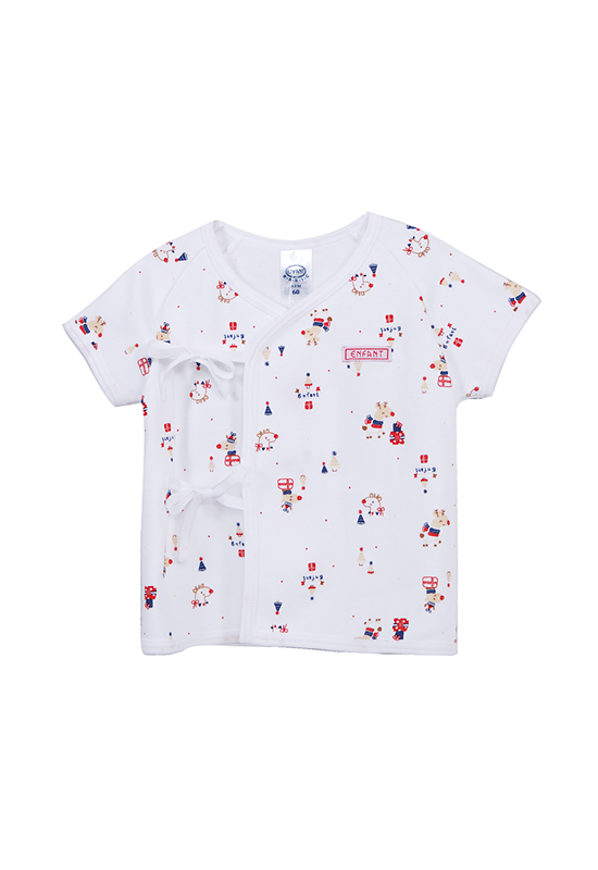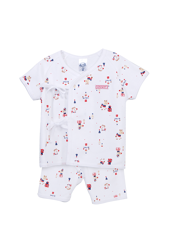 ENFANT Kids Short-sleeved tie-up shirt and 3/4 pants set little deer pattern – White (for children aged 0-6 months). 100% оригинал
