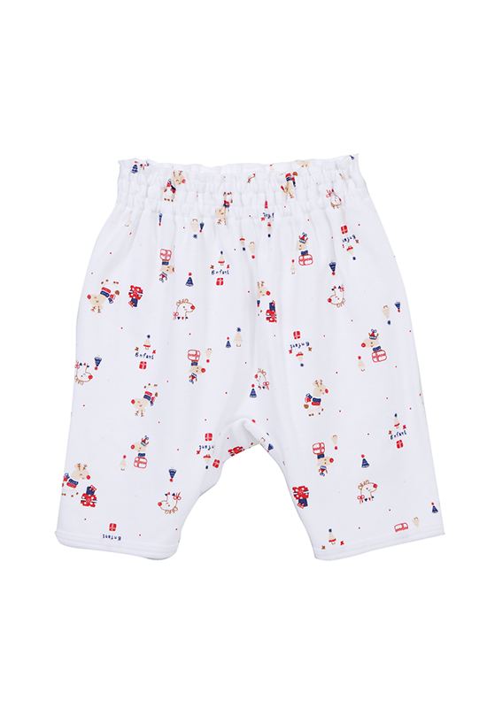 ENFANT – Set of short-sleeved tie-up shirt with 3/4 pants, little deer pattern – white (for children aged 0-6 months)