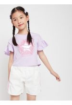 FOF KIDS Girl T-Shirt Ruffle Sleeves Star Print Purple. 100% оригинал