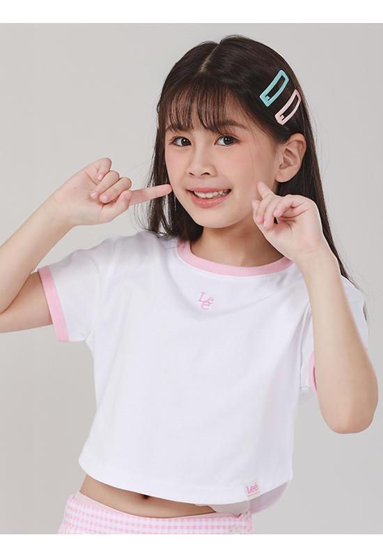 Slim Fit Girl’s Short Sleeve Tee comes with White color. From Little Pink Collection. Made from 60%Cotton 40%Polyesterfor the cooling and comfort, Girls’ Crew Neck T-Shirt featuring a central Lee logo embroidery with light pink trim for a cute and cheerful look, perfect for her age. Comfortable and versatile, it’s great for everyday wear.