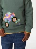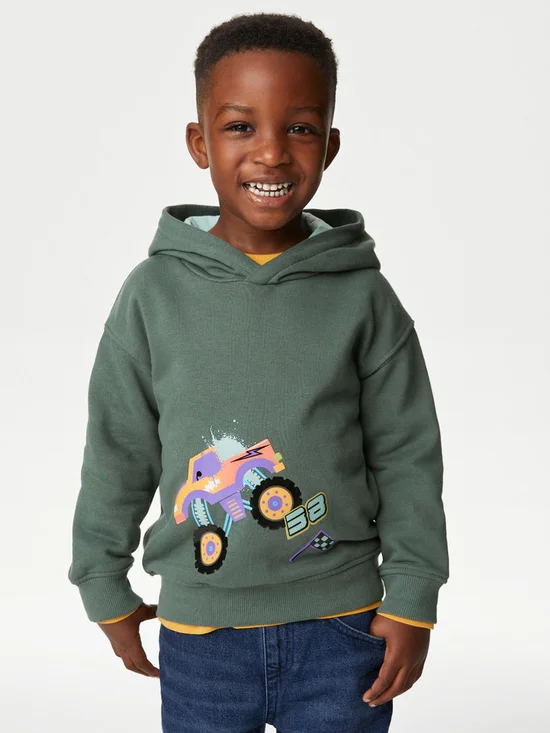 MARKS & SPENCER KIDS Boy Toddler Hoodie Cotton Rich Monster Truck Dark Sage. 100% оригинал