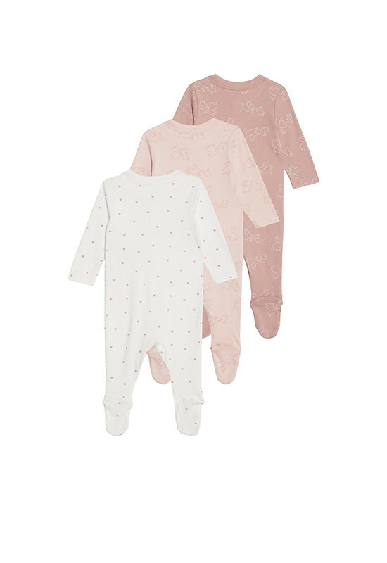 Girl Toddler Sleepsuits Pure Cotton Bunny & Heart 3 Pk