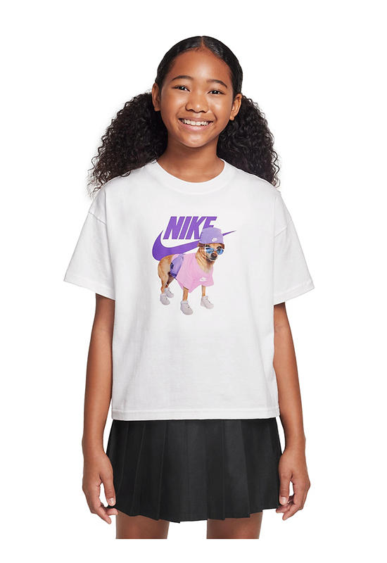 Nike Sportswear Big Kids’ (Girls’) T-Shirt. Made from soft and lightweight cotton, this relaxed tee is roomy in all the right places. A slight crop keeps it from feeling too big.