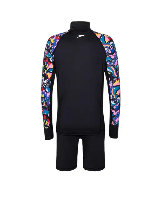 SPEEDO Deluxe Girls Rashguard features a colourful fabric that little ones are bound to love. It includes UV protective fabric of UPF40+ for sun protection in and out of the water. Soft and stretchy, our fabric provides higher chlorine resistance than standard swimwear fabrics.