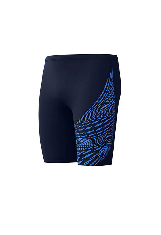 Get junior training off to a flying start in our SPEEDO Medley Logo Jammer Boys Swim Shorts. Simple styling with a wave-inspired plastisol graphic keeps the look streamlined. A drawstring waist allows them to adjust the fit, and weve added a V-panel liner for comfort. Cut from pilling-resistant Enduraflex fabric for better shape retention and higher chlorine resistance.