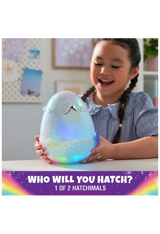 Inside every Mystery Hatch Hatchimals egg is 1 of 2 characters. Cuddle, tap, lift and rock the egg to encourage your character to hatch – the egg lights up and rocks, and you’ll even hear your Hatchimal reacting from inside! Once your egg has been given enough love, gather family and friends and prepare for the ultimate hatching experience. Magical mist appears and the egg glows rainbow, building the anticipation!