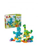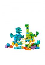 The 108 bricks and pieces in this LEGO? DUPLO? animal toy set assemble in 3 different ways: as Diplodocus and T. rex toys, Triceratops and Stegosaurus toys, or Pteranodon and Parasaurolophus toys. Toddlers can add fun to their dinosaur figures by giving them a moving neck, articulated tail, flapping wings, or mouths that open and close. Preschool kids build their dinos on a wheelbase, making this a great gift for toddlers who love LEGO DUPLO vehicle playsets.