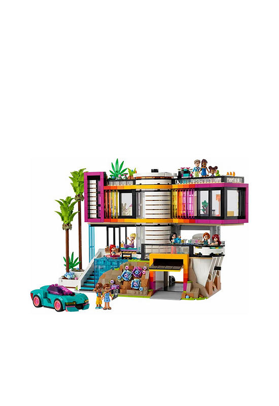 - Outdoor party zones This four-story home is where LEGO? Friends character Andrea hosts parties for her friends and comes with a pool, hot tub, dining area, yoga and music spaces and a waterfall