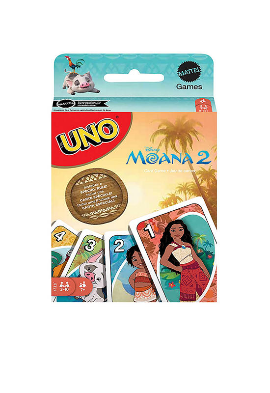 MATTEL invites you to have fun with The UNO game players love features graphics inspired by favorite characters from the movie Disneys Moana 2