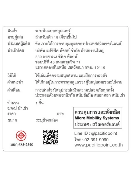 - Certified safety TIS 685-2540 standards from the Thai Industrial Standards Institute, Ministry of Industry