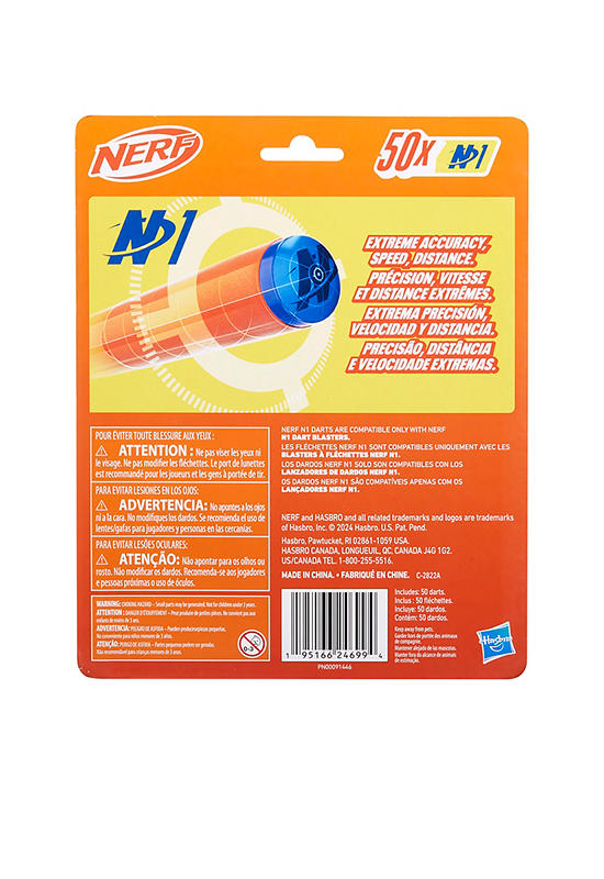 This pack includes 50 Nerf N Series N1 darts, compatible only with Nerf N Series blasters. Eyewear recommended (not included). Blasters sold separately, subject to availability.
