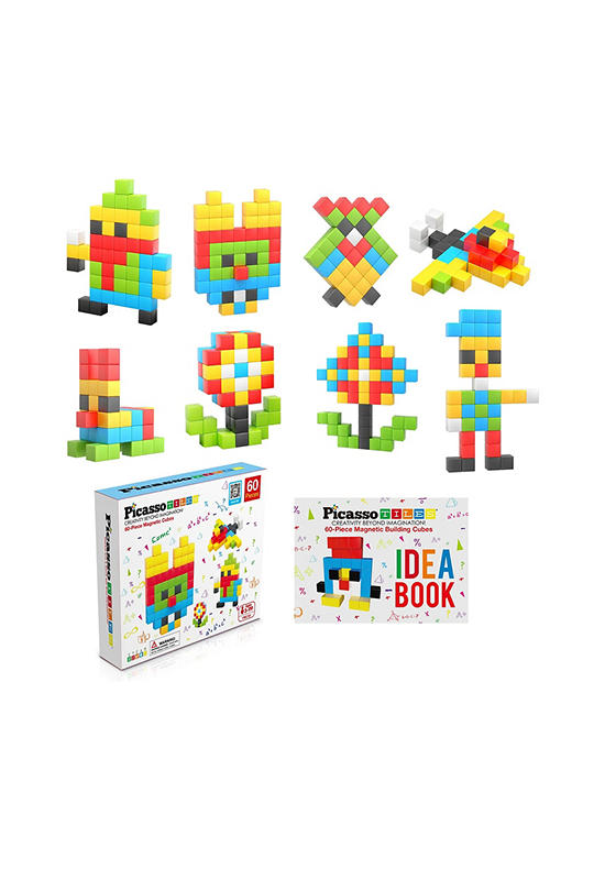 PICASSO TILES 60 piece Mini Cubes Magnet set (SKU: PMC60) is a compact powerhouse of colorful magnetic cubes. Complete with an instructional book to guide kids on building various designs, it’s perfect for building, stacking, and exploring, plus it’s the ultimate toy companion for on-the-go fun and imaginative play.