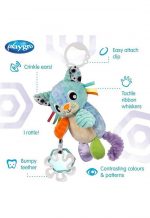 PLAYGRO presented Chill out with Sensory Friend Atka Arctic Cat! So many features, so much fun. Atka has been designed to stimulate baby’s senses and support developmental skills from birth. With a variety of materials and surfaces to explore including super soft, super plush fur, a fun jumbo cord tail and paws, flashes of metalic fabric, tactile whisker ribbons to encourage pincer grip, a bumpy teether leaf for soothing sore gums and a reflective mirror for developing self-awareness. Crinkle Atkas ears or shake for rattle sounds. Includes beautiful contrasting colours and patterns to stimulate baby’s visual senses and an easy attach clip to keep Atka close by in the car, capule, stroller or basinette.