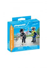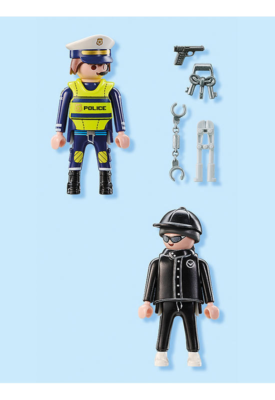 PLAYMOBIL DuoPack policeman and robber. The policeman with his gun and handcuffs catches the criminal just in time.