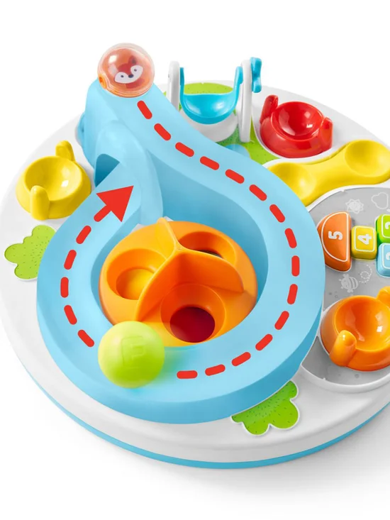 Little ones will have a ball with our interactive activity table. Featuring two stages of play for baby and toddlers, plus 20 developmental activities, kids will love to grab, rock and roll eight cute and colorful balls. A light-up piano, swirl slide and more awesome features, add to the action-packed fun.