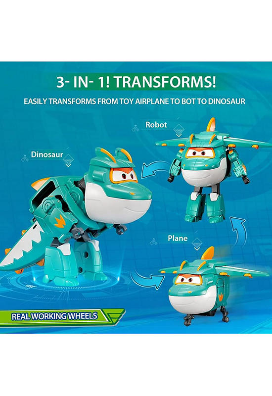 Introducing Tino from Season 6 of the hit preschool series SUPER WINGSthe oldest and most mysterious hero of the team. After being missing for a long time, Tino was recently rediscovered by the Super Wings. Known as the legendary hero, Tino can transform between his regular form, a plane, and an impressive giant dinosaur. Though hes not very talkative, his courage, loyalty, and incredible power speak volumes.