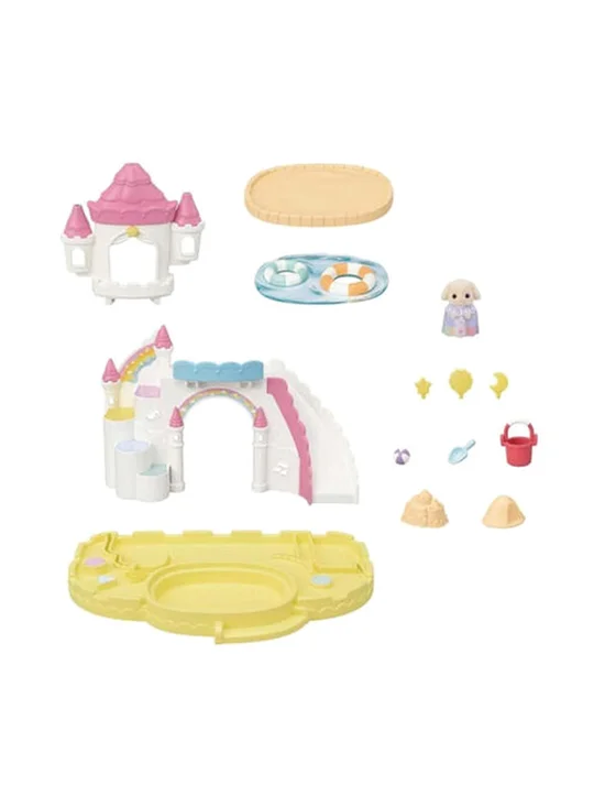 This small castle from the SYLVANIAN FAMILIES has several play areas: a castle tower with slides and stairs to climb up; Sandbox with equipment for building sand castles and a swimming pool to cool off. Features playing with a Sylvanian family means making wonderful memories for a lifetime. Many stories to create Sylvanian families instill positive values.