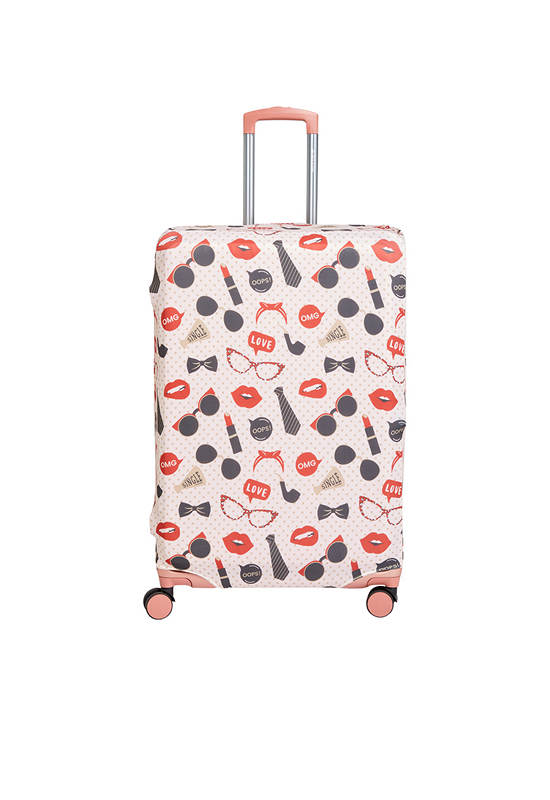 Luggage cover from ELEMENTS Made by polyester fabric mixed with spandex. The fabric can be stretched like a swimsuit. Use it to cover your travel bag. To prevent wrinkles or various impurities at the bottom is a Velcro zipper. Easy to take off and wear tighten the bag’s surface. Makes the bag stand out and be easily remembered.