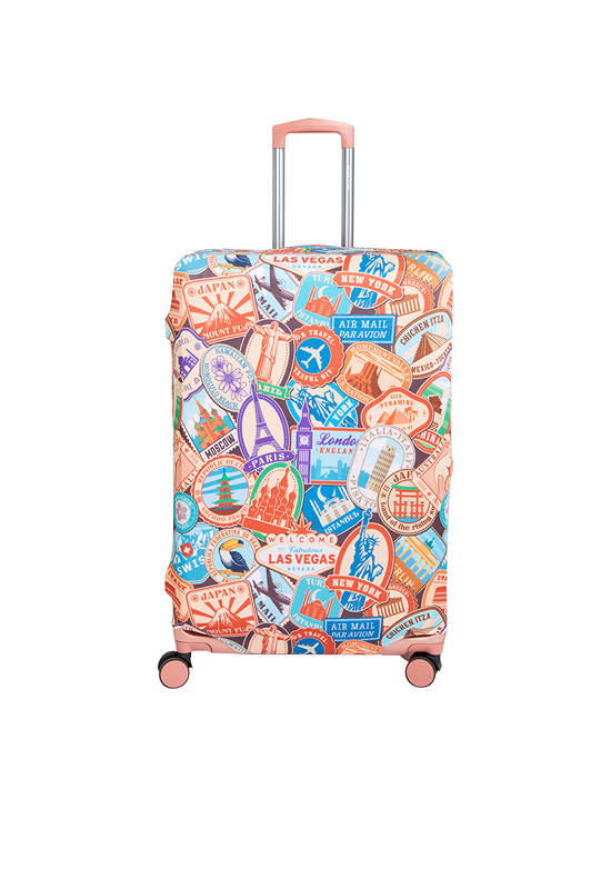 Luggage cover from ELEMENTS Made by polyester fabric mixed with spandex. The fabric can be stretched like a swimsuit. Use it to cover your travel bag. To prevent wrinkles or various impurities at the bottom is a Velcro zipper. Easy to take off and wear tighten the bag’s surface. Makes the bag stand out and be easily remembered.