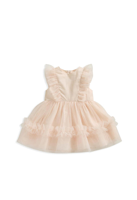 Short-sleeved tulle frill dress from MAMAS & PAPAS. Full tiered tulle mesh skirt fully lined with cotton.